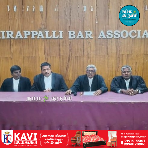திருச்சிராப்பள்ளி வழக்கறிஞர் சங்க அவசர பொதுக்குழு கூட்டம் சங்க வளாகத்தில் சங்கத்தின் தலைவர் எஸ்.பி. கணேசன் தலைமையிலும், செயலாளர் சி. முத்துமாரி முன்னிலையில் நடைபெற்றது.கூட்டத்தில் துணைத் தலைவர் ஆர்.வடிவேல்சாமி, பொருளாளர் டி. சதீஸ்குமார் மற்றும் இணைச் செயலாளர் எஸ். விக்னேஷ் மற்றும் வழக்கறிஞர்கள் கலந்து கொண்டனர். இக்கூட்டத்தில் நிறைவேற்றப்பட்ட தீர்மானங்கள் விவரம் வருமாறு: